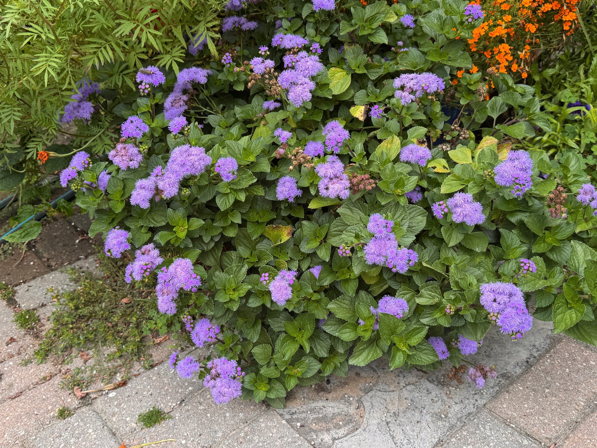 A busy, floriferous ageratum selected for its rich colour, tidy habit, and outstanding garden performance. Dense domes of soft, fluffy blooms in clear lavender-blue sit neatly above deep green foliage, blooming non-stop right through to frost.